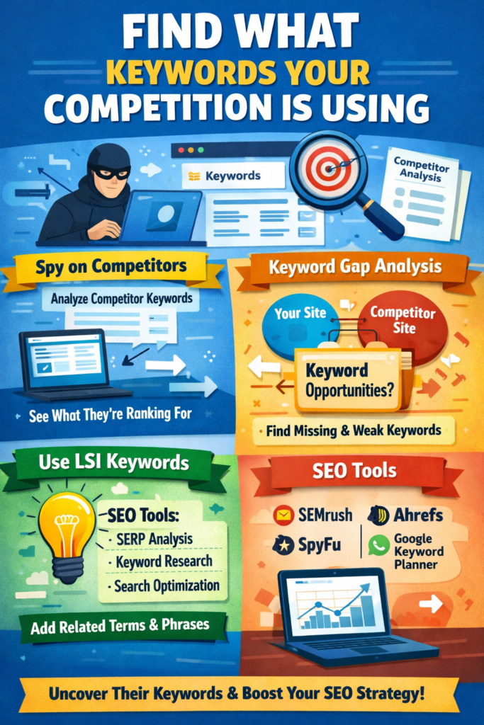 Understanding what keywords your competitors are targeting is one of the most powerful SEO strategies in 2026. It helps you uncover hidden opportunities, optimize your content strategy, beat them in search rankings, and attract organic traffic your rivals are already benefiting from. In this step-by-step guide, youโll learn how to spy on competitor keywords the right way including how to incorporate LSI keywords (Latent Semantic Indexing) to improve content relevance and ranking.