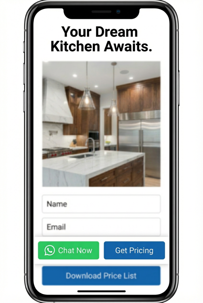 - The Hybrid Footer (Mobile):ย Implement a sticky bar with “WhatsApp” (Left) and “Go to Form” (Right) buttons.